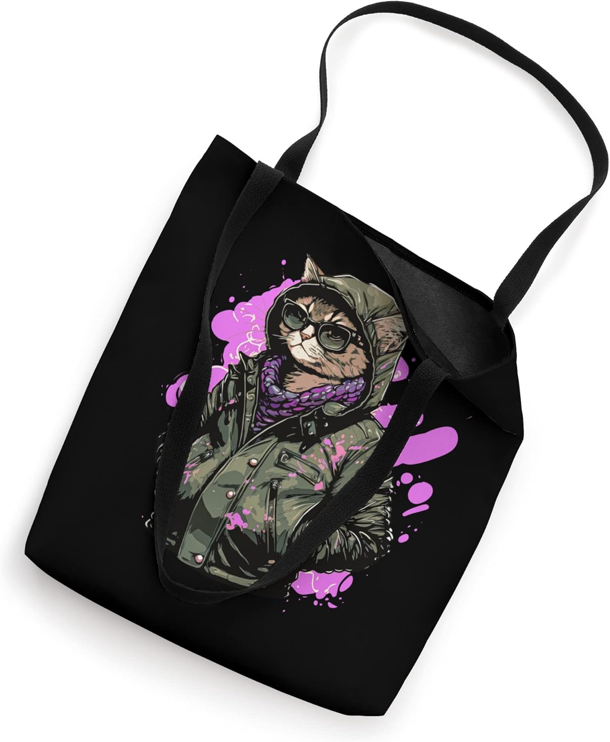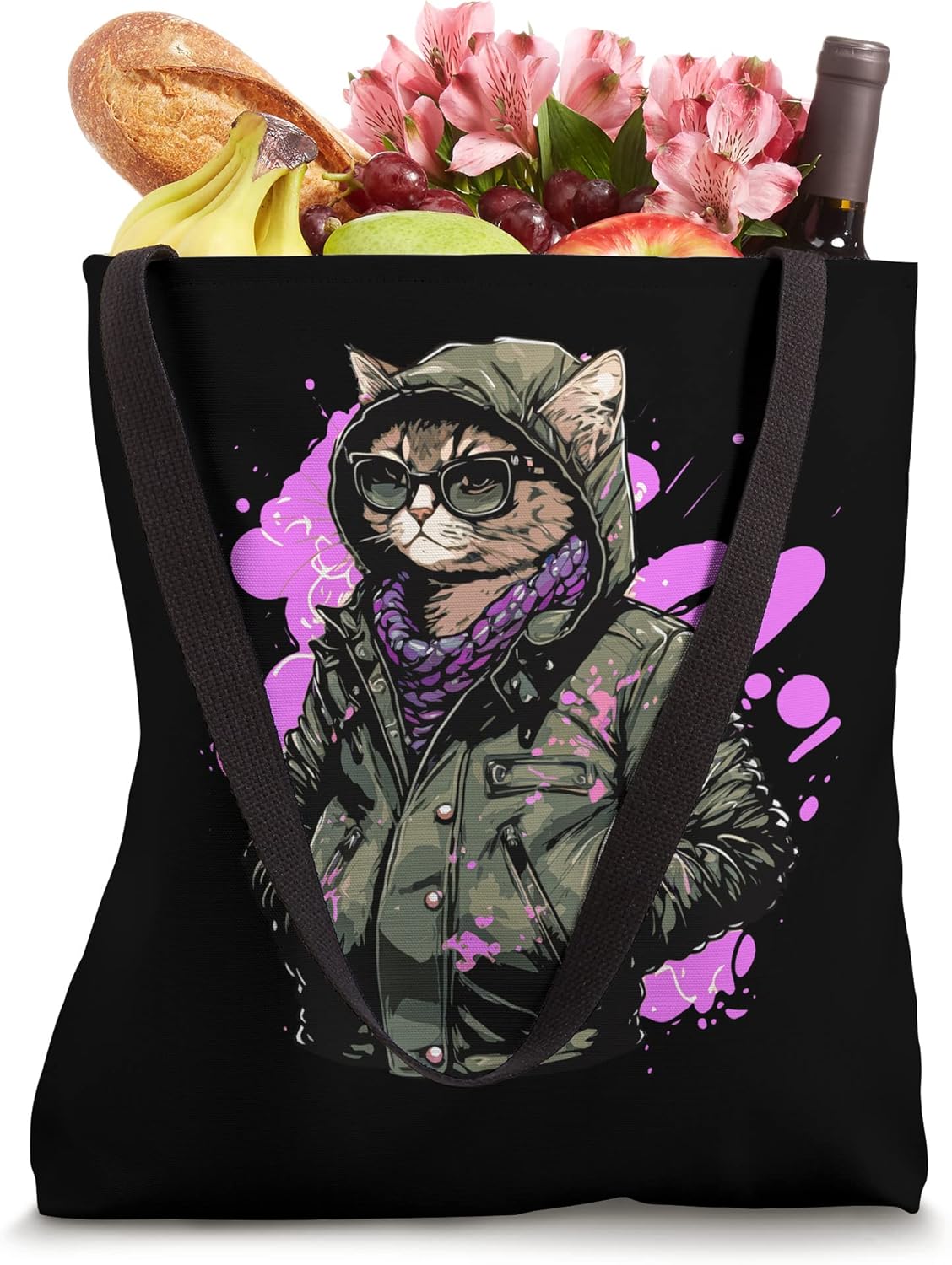 Introducing the ultimate accessory for the trendy and stylish cat lover – the Cool Hipster Cat Sun Glasses Hoodie Jacket Scarf On Fleek Tote Bag! This versatile tote bag is the perfect blend of fashion and functionality, featuring a chic design with a cool hipster cat wearing sunglasses and a scarf on a sleek black background.