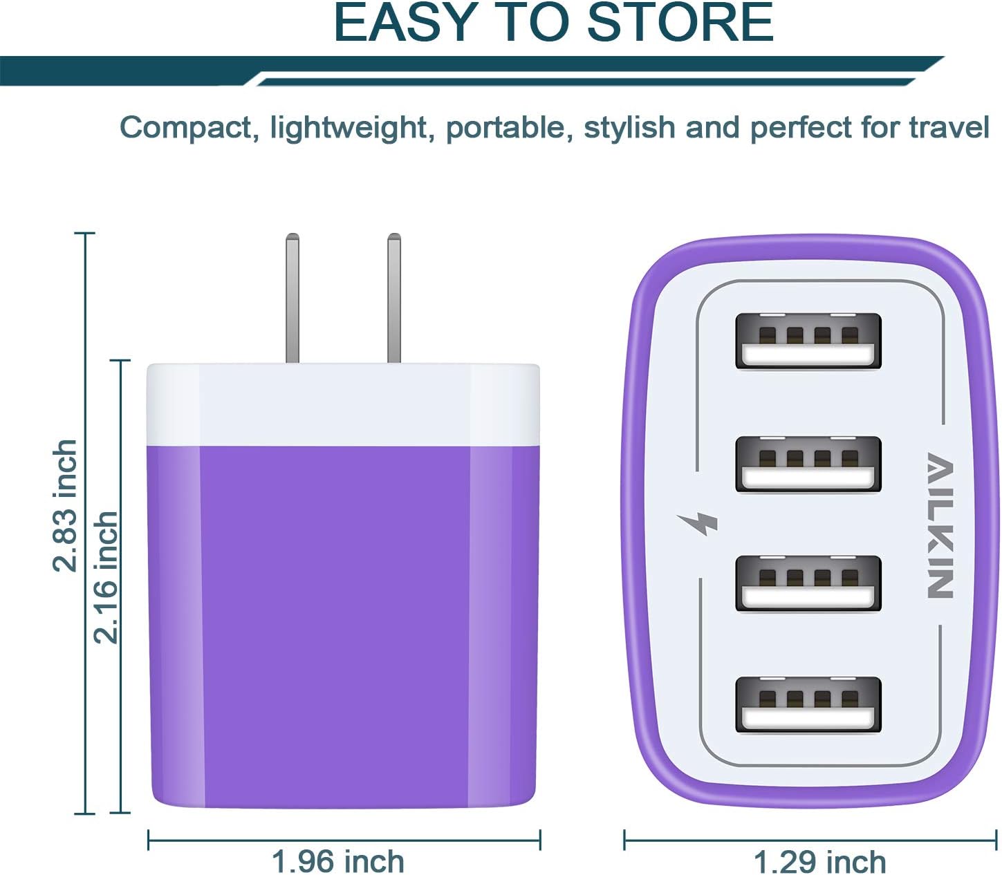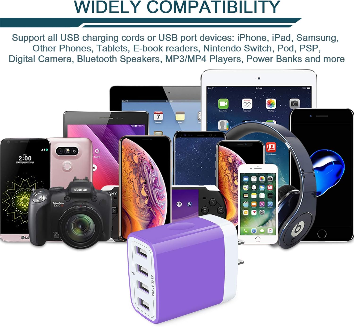 The AILKIN USB Wall Charger is the perfect solution for all of your charging needs. With 4 ports and a total output of 4.8A/5V, this charging block allows you to charge multiple devices simultaneously at high speed. Whether you’re charging your iPhone, iPad, Samsung Galaxy, Moto, Kindle Fire, headphones, doorbell, or Android phone, this power travel brick adapter has got you covered.
